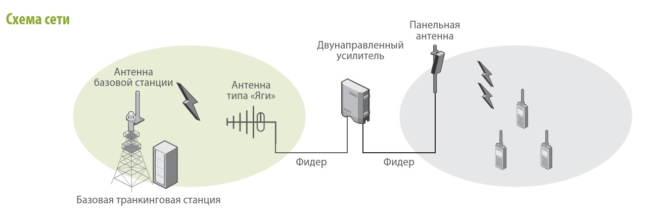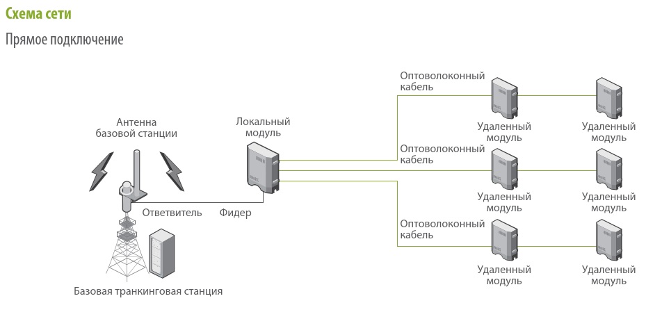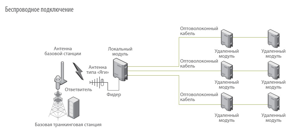• Подключение к базовой станции по РЧ фидеру или по радиоканалу